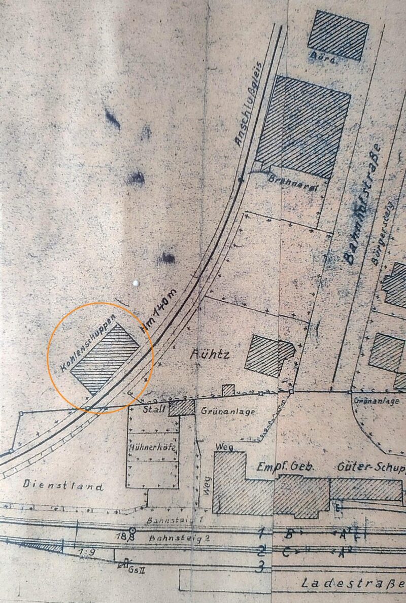 Wir haben auf unserem Gelände noch eine wirkliche Ruine stehen. Ein Dach gibt es schon lange nicht mehr und die Grundmauer fallen ein, so sie denn noch nicht eingefallen sind. Es ist ein alter Kohleschuppen, an dem vorbei früher die Bahngleise bis zu unserer Brennerei führten.